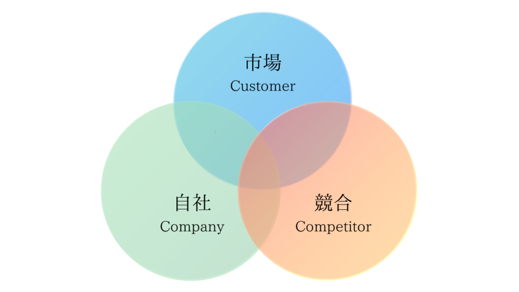 この場合、自社(Company)のお菓子の特徴や強み、顧客(Customer)の好みや需要、そして同じ地域で競合しているお店(Competitor)の戦略や商品ラインナップを把握することが重要です。