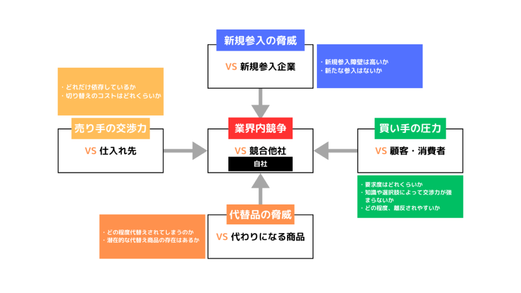 競合他社との差別化を図りたい場合には5F(Five Forces)分析が重要です。