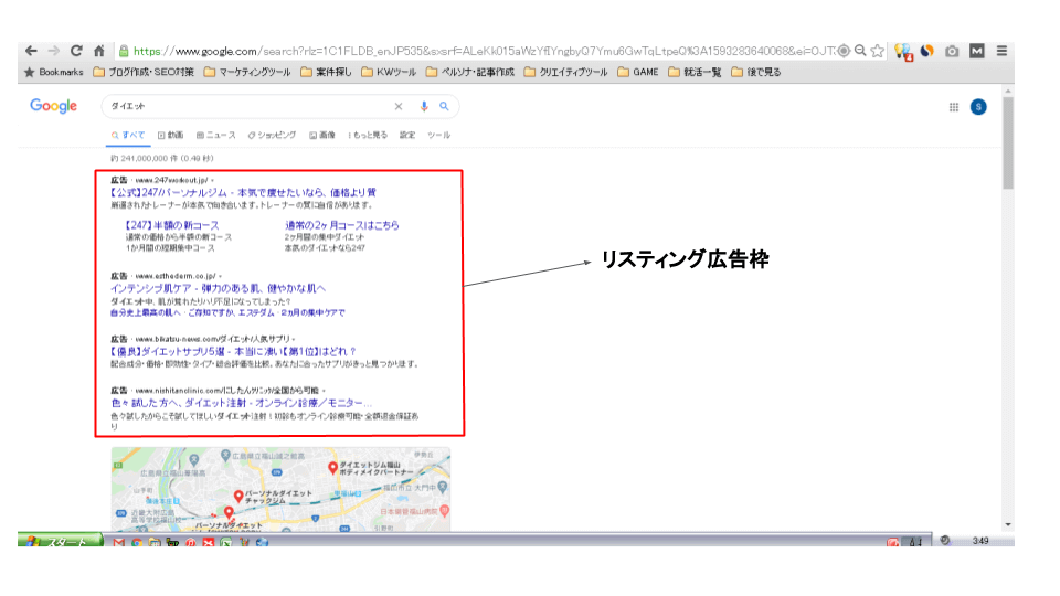 特徴として、自然検索上枠の「プレミアムポジション」という部分に表示できるのですぐにアクセスにつなげれることがメリットです。